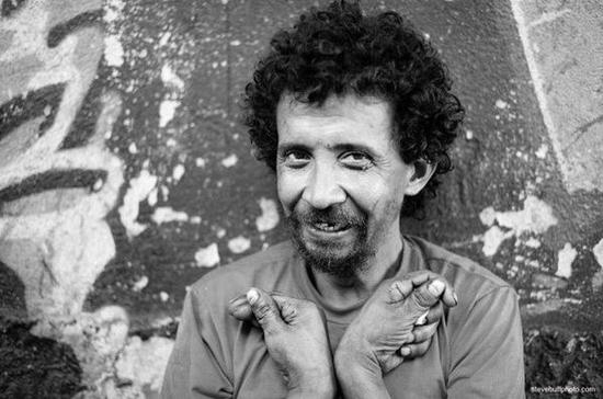 摄于巴西里约热内卢,当时我看到他一个人坐在街边乐呵呵的笑,就坐在一旁和他聊了会。他不会讲英语,但当他看到我的相机时想要我给他来一张,而这正合我意。我觉得和陌生人之间的交流也是街头摄影有趣的地方之一。