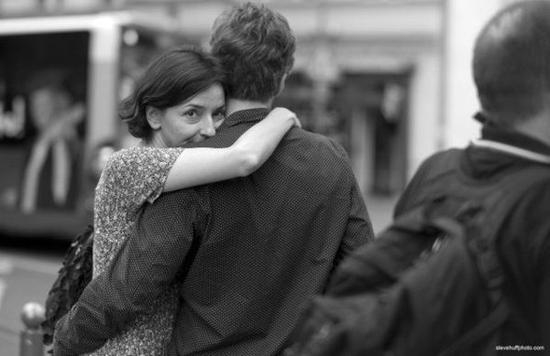 在柏林时我发现了这对亲密的情侣,我在街上跟着他们走了一分钟,终于在一个街口看到她转身拥抱了男友。发现我后她向我投来微笑,因为她知道我记录下了他俩的爱情。