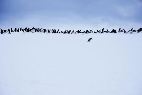 寒冷的南极有许多笨拙的企鹅,当我们走过冰雪表面后留下深深的小坑,于是离开的时候,都要重新用雪填满,因为担心企鹅落入其中无法自拔。在南极,每个小 岛都有企鹅,这些企鹅能在-60℃的严寒中生活、繁殖。在陆地上,它活像身穿燕尾服的西方绅士,走起路来,一摇一摆,遇到危险,连跌带爬,狼狈不堪。可是 在水里,企鹅那短小的翅膀成了一双强有力的“划桨”,游速可达每小时25~30千米。一天可游160km。 主要以磷虾、乌贼,小鱼为食。