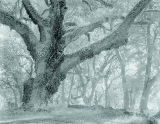 这棵巨大的橡树显然是兴趣中心,而背景的树则形成合拍的对位旋律