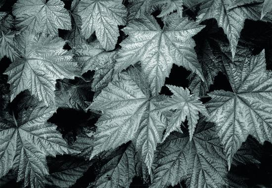 小路边的树叶产生一种具有金属光泽的节奏感,散布于树叶之间的深黑色小洞(树叶之间的空隙)也有着有趣的形状,充当着负空间的功能,而叶子则是正空间。