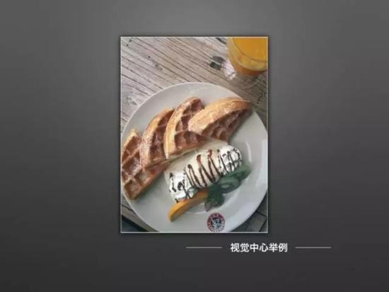 我们再来看同一个环境下拍摄的第二张照片。通过对组成照片的元素和背景的精简,以及拍摄位置的调整,我们得到了一张视觉中心比较明确的照片。在这张照片 里,餐盘作为占画面比例最大的元素,成为了最为吸引我们眼球的主体。但是,作为一张手机美食摄影作品,这张照片的视觉中心还不够突出,画面还需要继续精 简。