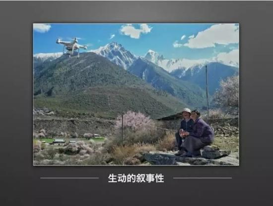 这张照片拍摄于西藏灵芝。画面远景中的风光本身足以让人流连。但更重要的是,画面前景的当地老两口看着刚刚起飞的无人机表现出的好奇与开心的表情,给这张照片的叙事完整性上添加了重要的一笔。而这一层次的内容,是真正能够打动观者内心的。