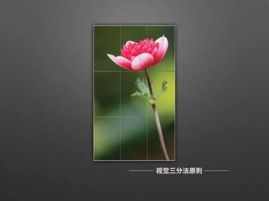 关于照片的构图先介绍一个视觉法则——三分法原则。它的理论基础是我们在看一张照片时,我们对照片中不同位置的元素给予的关注程度是不一样的。我们容易 被照片中处于偏左或偏右三分之一处的元素所吸引。如果把最容易吸引我们的位置用线连接起来,我们就得到了一个九宫格的网格。从构图的角度来说,把主体放在 九宫格横向和纵向相交叉的四个点上,最能吸引读者的注意。这就是构图的三分法原则。