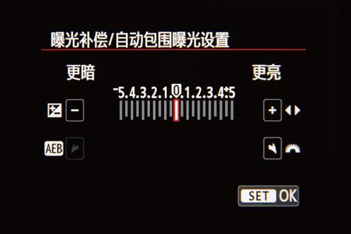 按下曝光补偿按钮,利用左右键便可以增加或者减少曝光补偿