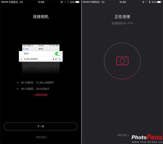首先要在手机上下载“小蚁微单相机”APP,相机设置中打开Wifi功能。打开APP点击下方按键,进行蓝牙连接。随后自动跳转至wifi连接,屏幕上会出现随机密码,匹配成功后连接。