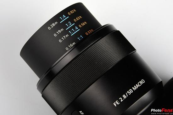 索尼FE 50mm F2.8微距镜身放大和距离刻度表