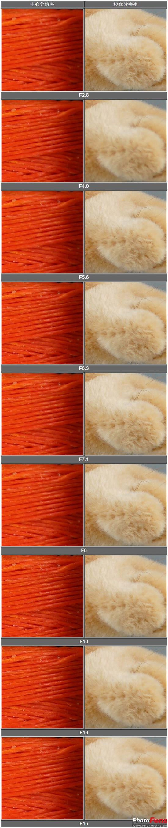 索尼FE 50mm F2.8微距分辨率测试对比表