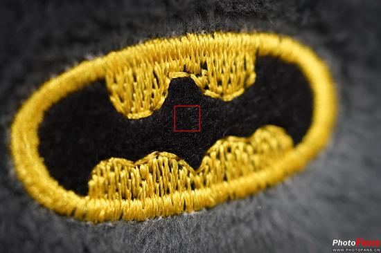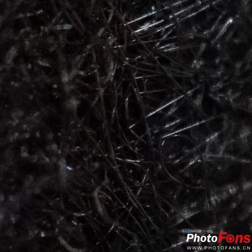 通过100%截图可看到,焦点中心的黑色纤维清晰可辨,每一根都是那么清晰。这个结果除了FE 50mm F2.8微距的高分辨率外,A7R II的高像素也起到了不小的作用。