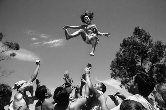 同样,处理高与低的对比时,如果没有对比,很难充分显示出其高度。比如我们跳跃的一瞬间,用平视的同一高度去拍,单是跳跃起来的那一瞬间,往往只能凸显人物的表情与动作,难以显其高。而利用低角度仰拍,压低视平线使远处的物体降低,就能产生不同的视觉效果。