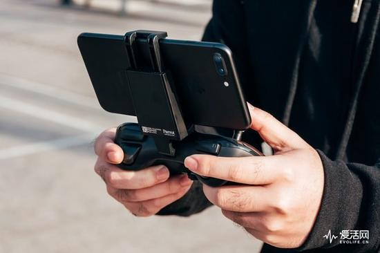 Parrot Flypad的操控方式与手机上的FreeFlight mini APP完全一致,遥控器提供的夹子能够夹住诸如5.5英寸的iPhone 7 plus。这也意味着手机屏幕上的飞行时间、剩余电量信息能够不被双手遮挡,而FreeFlight mini APP还提供了一个透明模式,可以看到手机背后的情况。