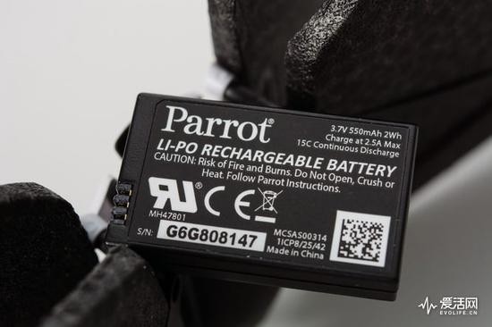 得益于巨大固定翼泡沫以及机身尾部的超声波传感器加持,Parrot Swing的下降动作非常平稳,并非Parrot BEBOP2上的粗暴落地。并且当电量剩余5%左右的时候,Parrot Swing也会自动启动落地程序,以减少Parrot Swing炸机概率。550mAh的可充电锂聚合物电池最多只能给Parrot Swing带来8分钟左右续航时间,而我们平均下来无人机的续航大概在5分钟左右,基本上体验一下固定翼飞行模式带来的刺激,电池续航就可以告罄了。