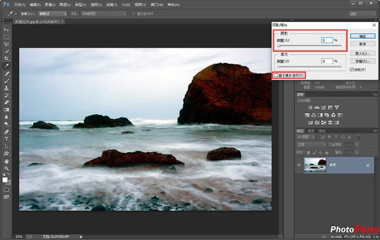 步骤4:调整完毕后,还可以对画面整体的色彩和对比度进行再次优化,其位于“阴影/ 高光”对话框底部,如图所示。调整完毕后,单击“确定”按钮返回,然后将照片保存即可。