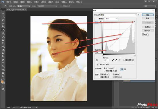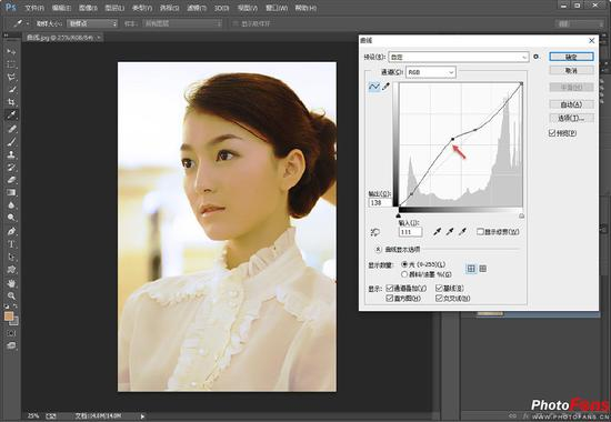 在使用Photoshop 对照片明暗进行处理时,曲线是比色阶调整更好的工具,使用频率也更高一些,深受绝大多数用户的喜爱。色阶与曲线有什么异同点呢?其实相同点很简单,这两者均可以调整照片明暗,均可以通过R、G、B 通道来进行调色。而不同点要复杂一些,利用色阶进行照片明暗调整时,调整的是照片整体的明暗变化,而曲线则可以通过选点来对照片某个区域的明暗进行精确调整。