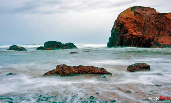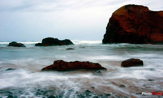 例如,逆光拍摄风光题材。正常曝光的情况下,背光的暗处总是曝光不足,损失了大量细节。看例图,场景光比很大,反差过高,这样地平线下的部分处于阴影,几乎看不到任何细节。