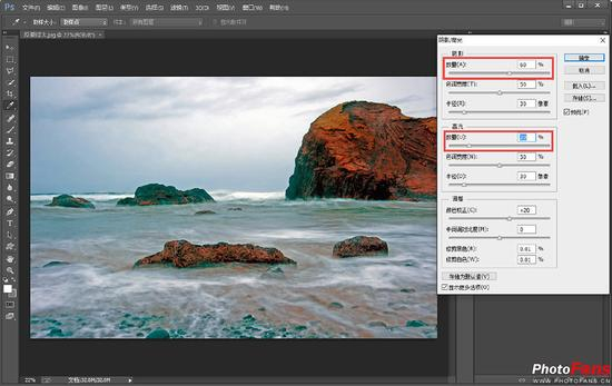 步骤3:此时就需要对“色调宽度”和“半径”两个参数进行调整了。适当拖动“色调宽度”和“半径”并随时观察画面效果,将照片调整到一个比较理想的状态。