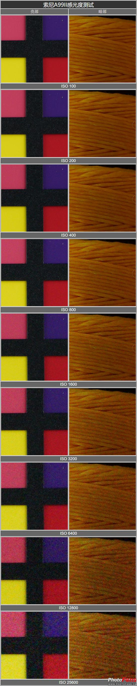 索尼A99II采用了4240万有效像素Exmor R CMOS背照式影像传感器和高速BIONZ X图像处理器,原生感光度从ISO 100-25600, 最高可扩展至ISO 50-ISO 102400。下面我们就来看下实际的感光度表现。