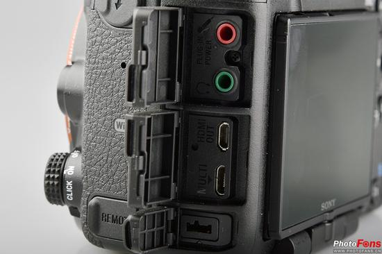 同时,A99II机身上也设计了较多的输出接口,方便各种功能行设备的扩展,从上之下分别是麦克风接口、耳机接口、Micro HDMI接口、多功能微型USB端口和电源接口。