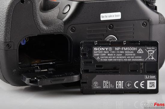 A99II采用了一块型号为NP-FM500H的1600mAh锂电池作为电源。这是索尼目前使用的又一块老古董电池,其用在A99II上续航能力最多仅为490张左右(LCD取景),与劲品们的差距较大。