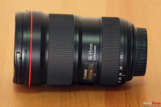 首次看到此镜头,第一感觉就是它真的很大,体积非常可观。具体尺寸为88.5×127.5mm、重量为890g。这点与之前的EF 16-35mm f/2.8L II对比差异非常明显,光学结构的改变促使体积变大也是有些无奈的选择。相信那些专业用户不会因为体积变大而不会考虑它,他们看中的是画质表现。