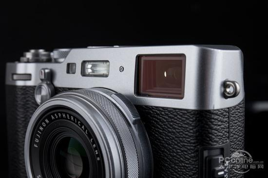 在富士X100F正面,拥有光/电混合取景器切换按键,向右拨动,切换光学/电子取景器模式,向左拨动,切换光学取景器下的对焦小窗口。