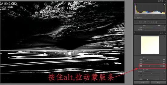 接着按住alt键的同时滑动蒙版选项条,此时图片变成如上图的灰度图。白色代表锐化完全作用的区域,黑色代表无锐化的区域。我会通过滑动选项条来控制锐化的阈值,避免锐化过度作用于无细节的区域。