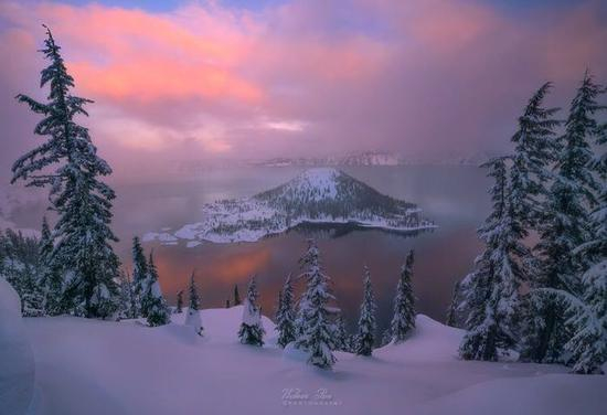AdventureX成员潘玮浩(Weihao Pan)在美国俄勒冈州的craterlake拍摄于一场冬季风暴后