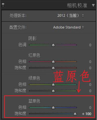 在lightroom右边界面的最下方有个相机校准的版块,通常我会把最下面的蓝原色饱和度开到100%。
