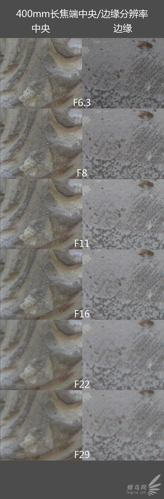 400mm端最大光圈F6.3色散控制表现