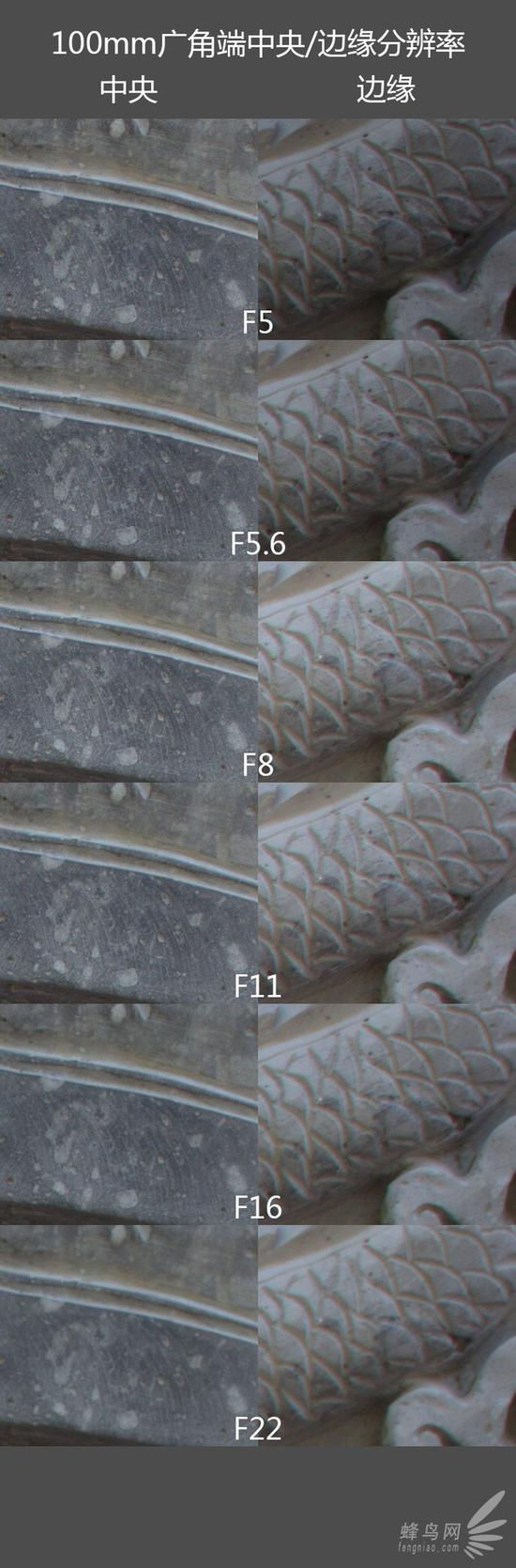 100mm端各档光圈色散对比