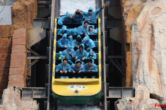 笔者为挑战EOS 77D的追焦性能,选择了一个极有难度的45度角拍摄,使用300mm长焦进行连拍测试。通过100%放大,我们可以清晰的看到,整个运动画面的全部过程都被这款机器牢牢地记录下来,这位游客的面部表情从激流勇进的最高点到最低点的变化似乎始终与一。结合到激流勇进本身的可変加速特性与拍摄距离,在焦点范围的内画面没有出现完全没有出现任何脱焦现象,这项测试的结果的让笔者感觉比较惊讶。