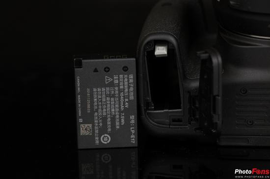 佳能在EOS 77D上沿用了传统的小型电池系统,具体型号为LP-E17。这枚电池的容量为1040mAh,虽然看上去电量并不大,但实际续航性能比较理想,至少可以达到500张以上的水平。