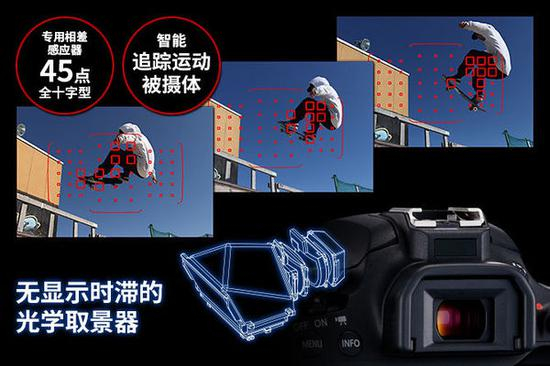 值得一提的是,此次对焦方面的提升更是这款相机的最大亮点,不同于传统的单反相机,EOS 77D拥有两套独立的相位对焦系统!首先,光学取景器的对焦系统,采用了全45点十字型自动对焦。光学取景器因为没有时滞,所以特别适合抓拍快速运动或突然运动的物体。