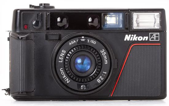 历史:L35AF是尼康于1983年推出的首款自动对焦袖珍相机,简单的设计和锐利的35mm F2.8镜头使其成为市场热点。这部全自动紧凑型相机的机身前部有一个+2EV的曝光补偿拨杆,其测光单元位于镜头正下方,内置弹出式闪光灯,并可以使用滤镜。