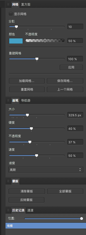 关闭网格,选择画笔大小与硬度以及速度,接下来就可以一点点刷想要放大/缩小的局部细节了。