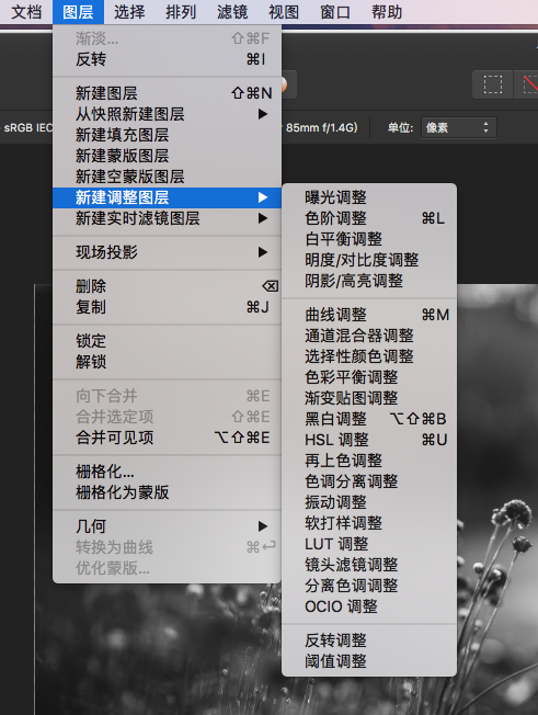 当然如果这个精修时候发现还需要做色彩通道调整,我们可以从图层下拉菜单选择黑白调整(彩色片选择HSL调整)