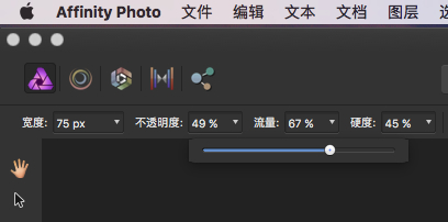 宽度代表画笔直径大小(单位像素),流量和硬度适当减弱来调整画笔的轻重程度