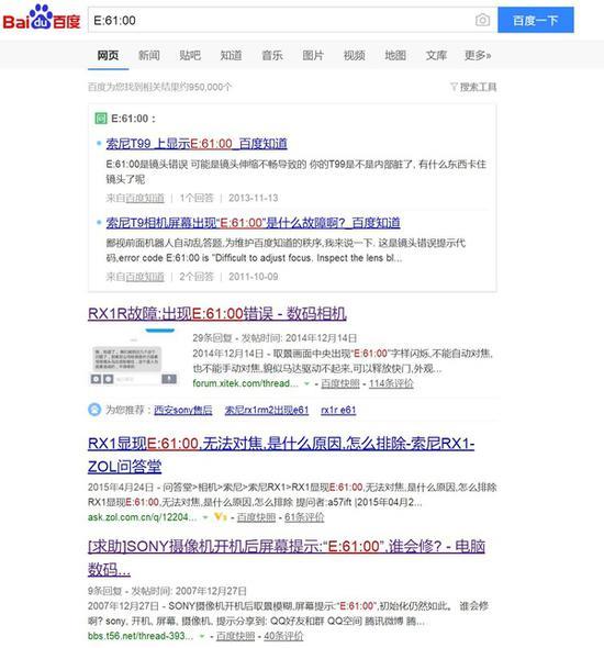网上搜了下关键词E:61:00,发现这是一个索尼影像设备的硬件故障的识别码,代表镜头故障,镜头无法对焦。这就杯具了,说明可能是硬件出问题了。又过了保修期,修起来还不知要花多少钱。