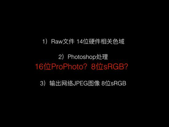 3。 理解“Raw - ACR - Photoshop - 输出JPEG”完整后期流程中,各个步骤的色域和色深设置。