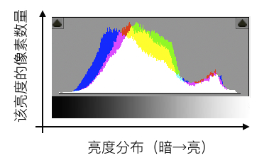 有些直方图上还会有颜色,这说明这种颜色在该亮度区域的表现非常强烈,你可以用它来判断照片的色调。