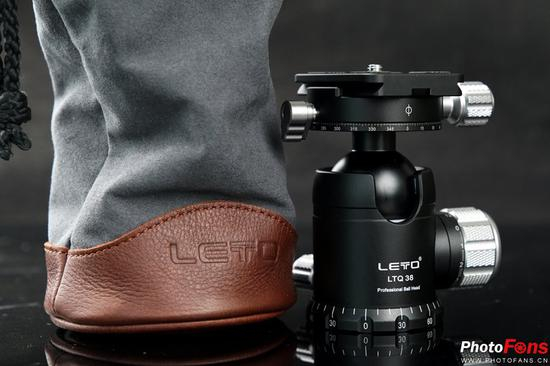 云台方面笔者收到的这只脚架配备的是力图LTQ 38球形云台,该云台在力图产品系列中被定位为专业型全景云台,球体直径38mm,云台高度95mm,官方给出的安全负重为30KG,云台自重0.45KG。