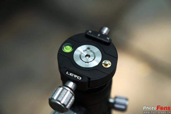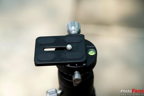 而云台的操作也很方便,不会因为手忙脚乱而拧错锁紧旋钮,双全景平台的设计保证了在复杂地形下也能完成全景照片的拍摄,不过还是前面说的那个问题,至少笔者使用中是这样的(也许是我操作问题),若将快装板置于正中可能会出现遮挡住水平仪的情况,此时将快装板稍微前置一些即可。