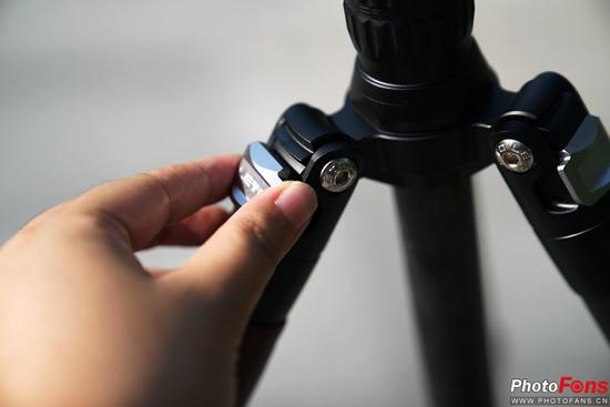 高低档位方面,3级不同角度配合中轴倒置方便了低角度拍摄的需求,同时按钮卡紧结构保证了稳定性,不过注意抬起按钮时需稍将脚管向里收一些,因为此时按钮是卡在卡槽上的。