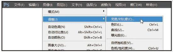 (9)在“图像”菜单中,执行“调整”>“亮度/ 对比度”命令,如图所示。