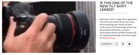 目前佳能在售一共拥有四支移轴镜头:TS-E 17mm f/4L、TS-E 24mm f/3.5L II、TS-E 45mm f/2.8、TS-E 90mm f/2.8,而此次新的移轴镜头应该是目前佳能这几支镜头的升级版,但具体是那几张目前还无法确认。