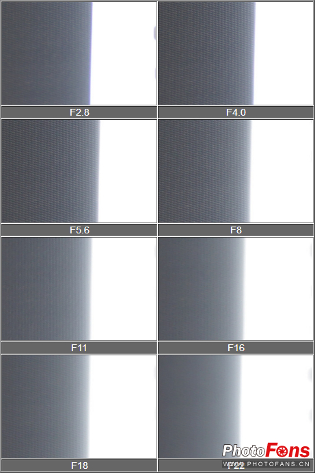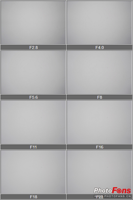 前面说到,一般为了避免暗角情况的发生,会选择使用大口径的镜片,而Zeiss Batis 135mm F2.8口径仅为67mm。从测试图中可以看到,当光圈值在F2.8时,有较为轻微的暗角情况,当光圈值调整到F4.0时,暗角情况基本消失,随着进一步的调整暗角消失。可以看出Zeiss Batis 135mm F2.8从光圈值F5.6开始对于暗角的控制能力还是相当不错的。