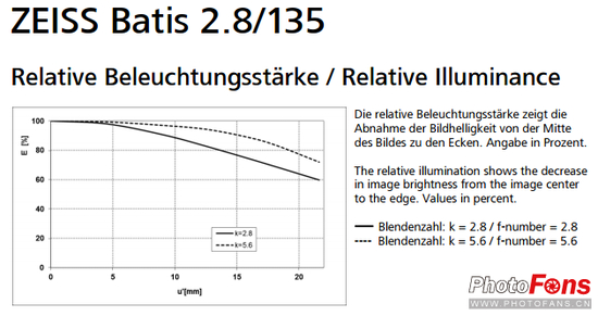 镜头的暗角“失光”现象是每一款镜头都无可避免的,为了避免或减轻暗角情况的出现,一般会选择使用大口径镜片进行应对。下面让我们来看一下Zeiss Batis 135mm F2.8对于暗角的抑制效果如何。