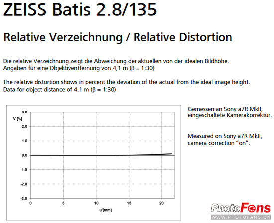 镜头畸变实际上是光学透镜固有的透视失真的总称,虽然完全消除畸变是不可能的,但是可以利用镜片组的优化设计,以及选用高质量的光学玻璃来减轻这一现象。下面就让我们来看一下Zeiss Batis 135mm F2.8对于畸变的控制力如何。