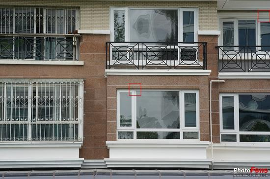 对于Zeiss Batis 135mm F2.8这款经典人像焦段的镜头而言,细节的展现好坏尤为的重要,而细节的好坏则和分辨率有紧密的联系,那么让我们一起来看一下Zeiss Batis 135mm F2.8的分辨率如何吧,测试距离为在5-6米距离拍摄房屋外表面,精准对焦后,截取中心与边缘进行检测。