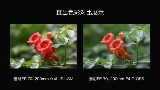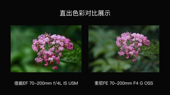 除了色彩本身的饱和度之外,两者的色彩风格也有着明显区别,佳能70-200mm F4的出片效果偏暖、偏红,索尼70-200mm F4则偏冷、偏绿。需要说明的是,色彩表现与相机的直出算法也有很大关系,并没有一个绝对的标准,具体喜欢哪种色彩,还得看各位自己的喜好。